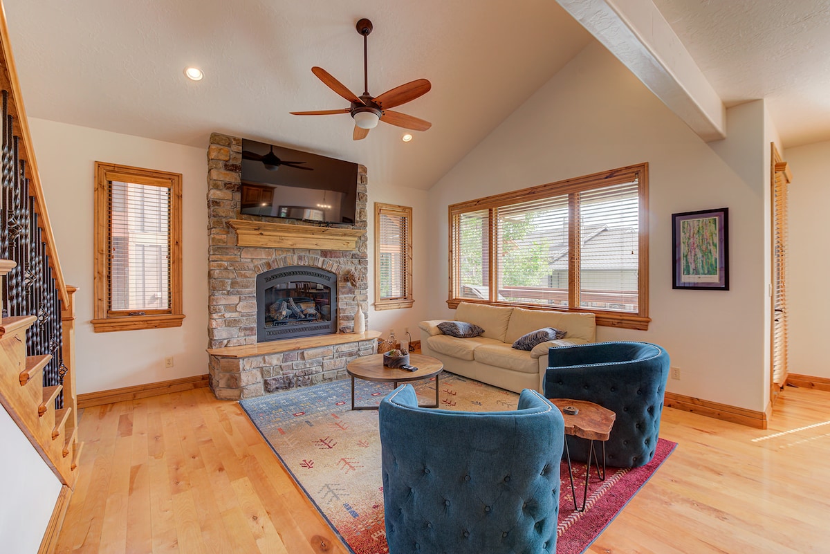 Nuevo, decorado profesionalmente, dos dormitorios principales y espacio de trabajo dedicado con monitor grande. Tarifa de limpieza BAJA, aceptamos estancias cortas y largas. Jacuzzi para☞ 8 personas. A ☞ 5 minutos en coche de la telecabina Deer Valley Jordanelle. ☞ Escanea el código QR para un recorrido en 3D. ☞ Fogata y parrilla en el patio trasero. Cocina de☞ chef, electrodomésticos Viking. ☞ Cochera para 2 coches grandes ☞ Ideal para varias familias y grupos grandes. Colchones, sábanas y toallas de☞ alta gama. Televisores inteligentes☞ grandes. Ubicación perfecta durante todo el año para todas las actividades.