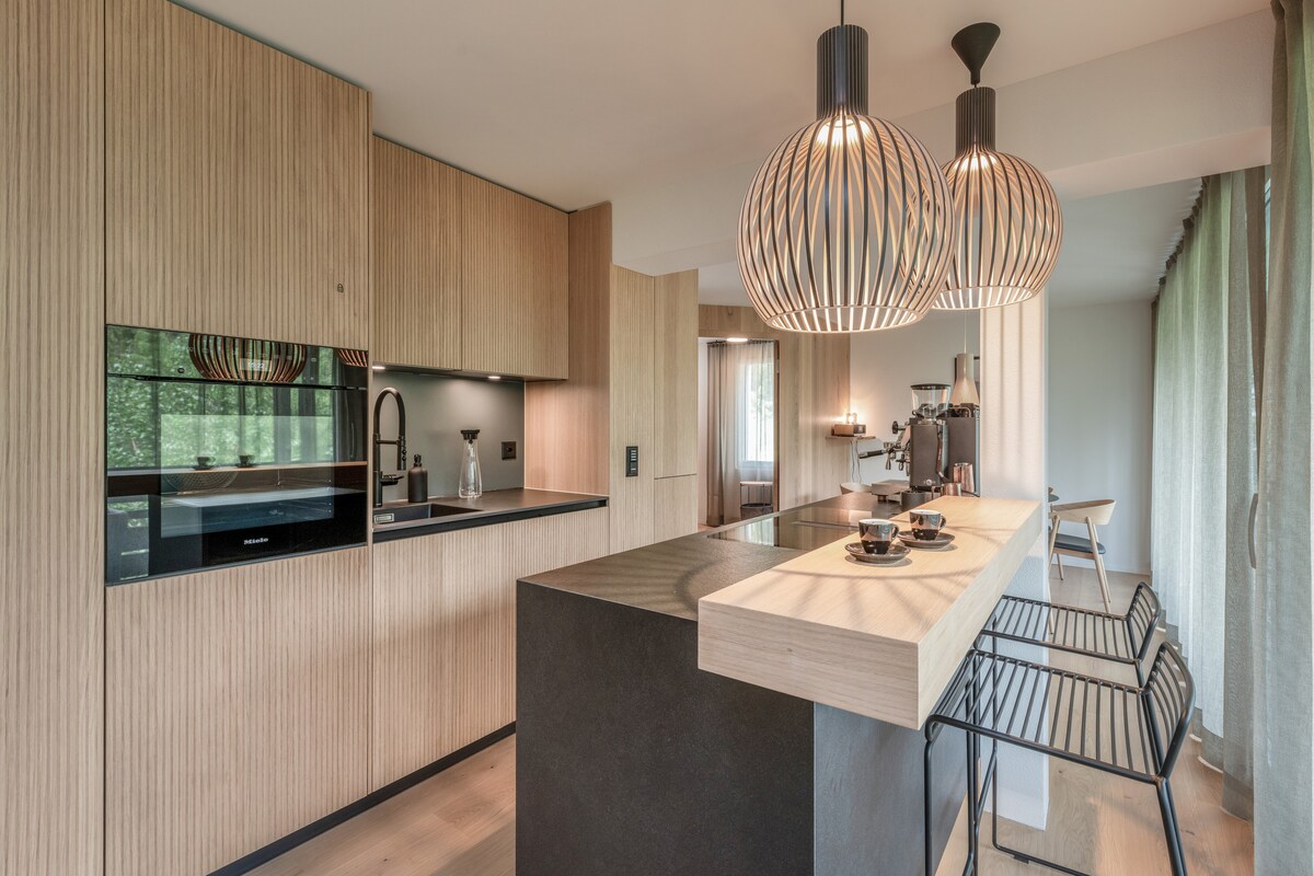 Relájate en este Rifugio único. Apartamento de 2 habitaciones y un aseo totalmente renovado en 2020, cuyo diseño interior ha sido completamente rediseñado. Reformado como loft con los materiales más nobles (granito Valser, parqué de palacio, mucha madera vieja, bañera independiente, chimenea de hierro abierta por dos lados, grifería de diseño). Con terraza y jardín protegidos. Ubicación soleada y tranquila. Entrada privada, sauna en el edificio anexo. Acceso directo a las pistas de esquí o autobús de esquí a tres minutos.