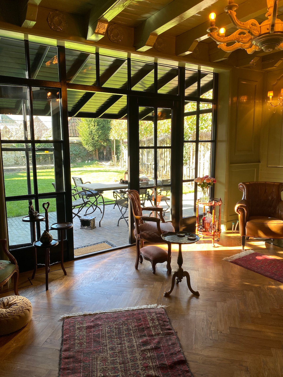 En la casa de huéspedes sientes inmediatamente el ambiente relajante. A través del uso de materiales naturales y la vista del jardín y los animales, realmente puedes experimentar el campo. En el exterior, puedes encontrar todo tipo de animales, como una liebre o un faisán. Y, por supuesto, los pollos y las alpacas. En el juego de salón se ve desde la casa de huéspedes, puedes relajarte. Entras directamente en el prado para conocer de cerca a las alpacas.