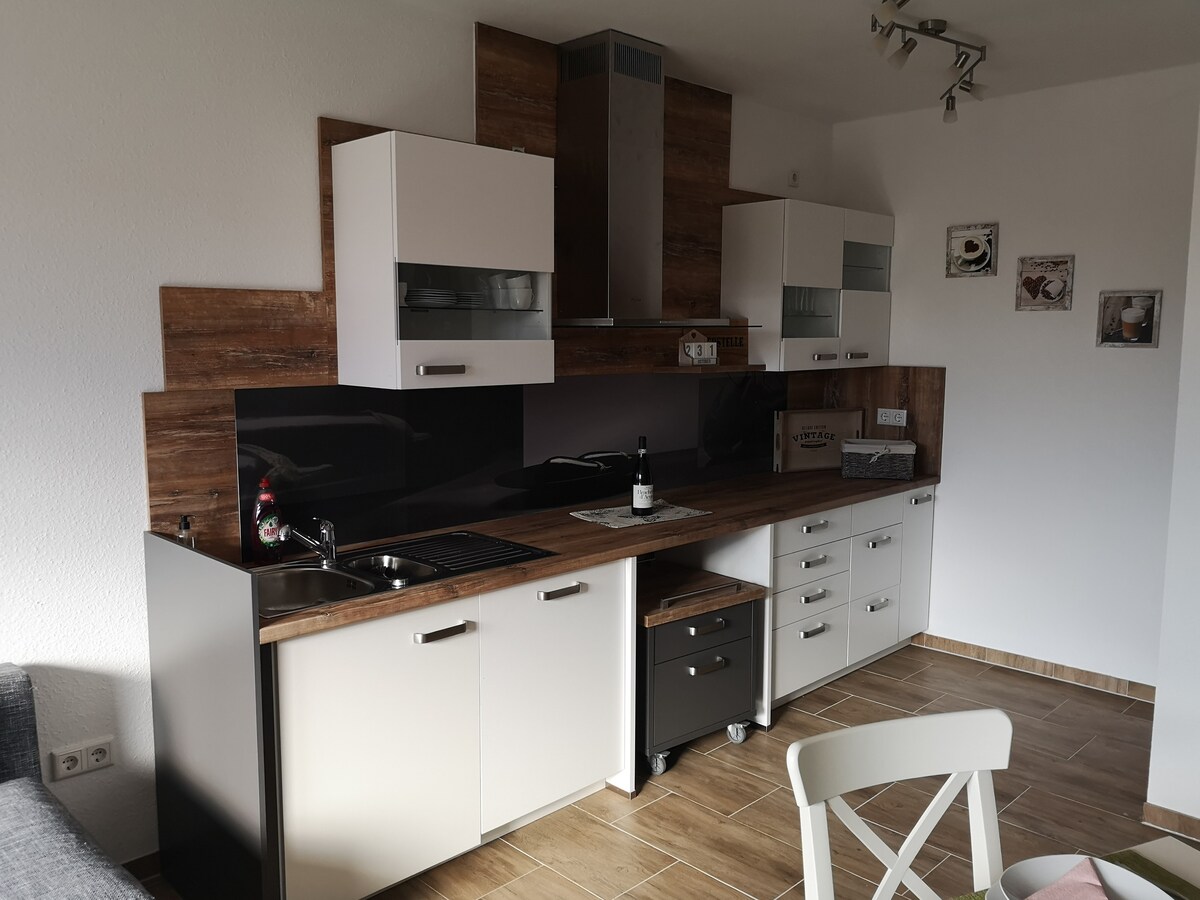 Nuestro apartamento de vacaciones con jardín se encuentra en el centro histórico de Oberkaufungen. Se encuentra en una casa de entramado de madera con vistas a la iglesia de la abadía y al bosque de Kaufungen. El tranvía a Kassel se encuentra a 10 minutos. El apartamento está recién reformado. Tiene unos 40 metros cuadrados. de superficie habitable, que consta de un dormitorio cerrado, un baño y una cocina totalmente equipada. El apartamento es adecuado para 2 adultos. Si viaja con un niño pequeño, hay una cuna de viaje disponible. El jardín delante de la casa puede ser compartido por los huéspedes. Hay una zona de estar con mesa y sillas que invita a desayunar en el campo o a tomar una copa de vino al atardecer. Se admiten mascotas, pero deben ser anunciadas con antelación. La estancia de un perro cuesta 10 euros adicionales para 1-2 días, para una estancia más larga 20 euros.