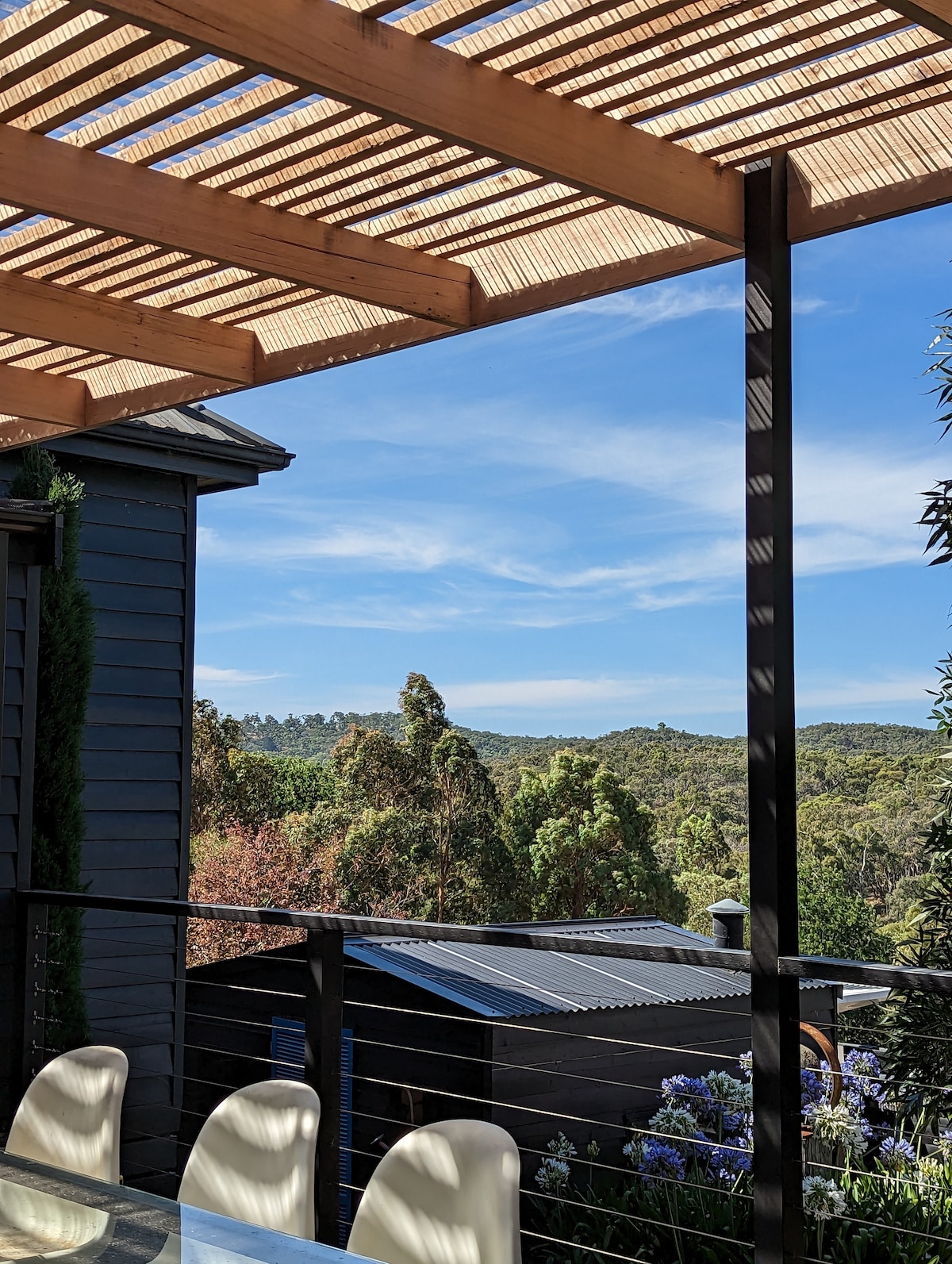 Our atmospheric cabin sits amongst the gum trees, surrounded by birdsong. Named after the Gububurras (Kookaburras) that share the property with us, it's only ten minutes walk to the Mount Macedon village for coffee or a short drive to find wineries, village markets and forest walking trails. Alternatively in the cooler months you can curl up by the fire and read or enjoy the view from the terrace by the fire pit. The calming effect of Guruburra on our guests is almost immediately