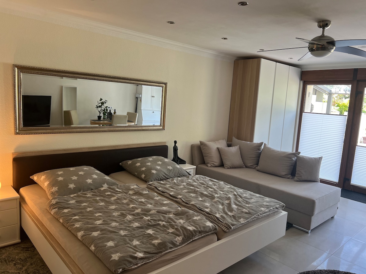 Loft de lujo Herdecke MEJORES EVALUACIONES⭐⭐⭐⭐⭐ Disfruta de un ambiente elegante preparado con atención 💘 a los detalles, relájate como un 👑 rey. Te espera una experiencia única en este alojamiento de lujo céntrico. Ya sea desde la bañera de hidromasaje, la cocina o el área para dormir, hay un televisor disponible en todas partes, TV HD y Netflix, Magenta, Disney, Prime y YouTube. ¿Quieres sorprender a alguien? No hay problema, te ayudaremos a que este día sea especial.