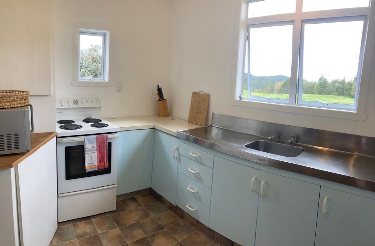 ¡Hola! Bienvenido a nuestra hermosa casa de campo en la cima de una colina. Situada en 200 hectáreas de tierra privada y tranquila. Nuestra moderna casa de campo independiente de 3 dormitorios y 2 baños tiene hermosas vistas panorámicas de la costa oeste. Capacidad para 6 personas. Camas muy cómodas, 2 tamaño king y 1 tamaño queen. Hermosa agua de manantial subterráneo alimenta la casa y sabe maravilloso. Espectaculares amaneceres y atardeceres del cielo nocturno. El supermercado más cercano para tus suministros es el área de Dargaville o Hokianga.