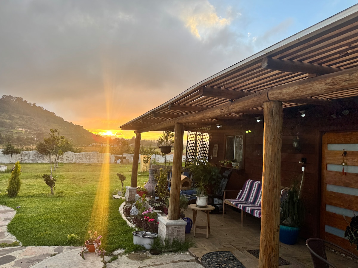 Cabaña estilo pagoda, 3 recamaras y Jardin privado