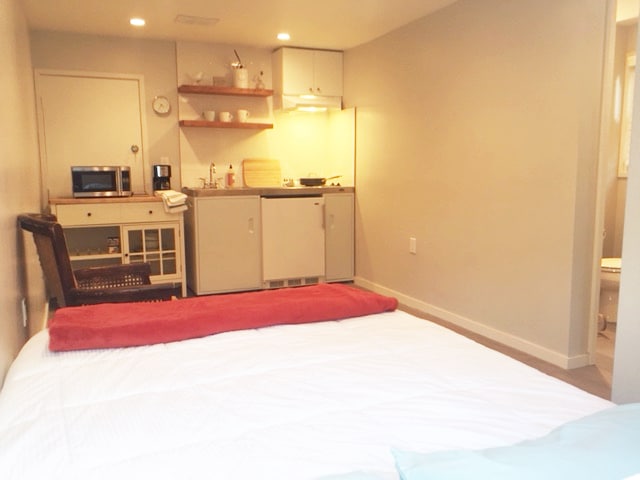 Hideaway in the Heart of LA: Separate entrance to the gated yard. Warm and modern studio with natural light and open space. Super comfy queen bed and full pull out sofa bed. Just enough of home with a small refrigerator and microwave to use for snacking and a coffeemaker however, not a kitchen. Located in the hip and fun neighborhood of Highland Park, close to downtown LA, Pasadena, Glendale, and s short drive to Hollywood and Santa Monica. Close to freeways and public transportation.