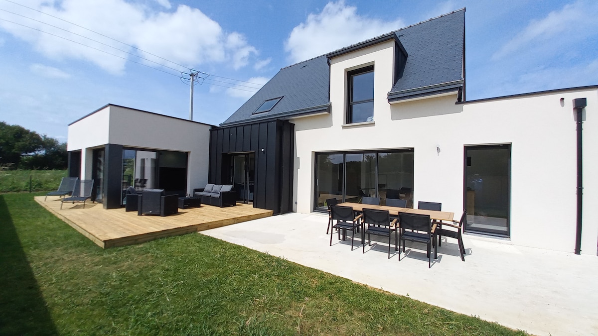 Casa nueva de un solo piso con garaje, situada en la península de Hillion en el corazón de una reserva natural, a 800 m del mar y del GR34 A 45 minutos de la costa de granito rosa A 1 hora de la ciudad corsaria de Saint-Malo A 15 minutos de la localidad costera de Val André A 40 minutos de Cap Fréhel y de las playas de arena fina de Sables d'Or les Pins A 5 minutos del parque de aventuras Indiana Forest Accrobranche No dude en venir a recargar energías, descansar y pasar buenos momentos en familia