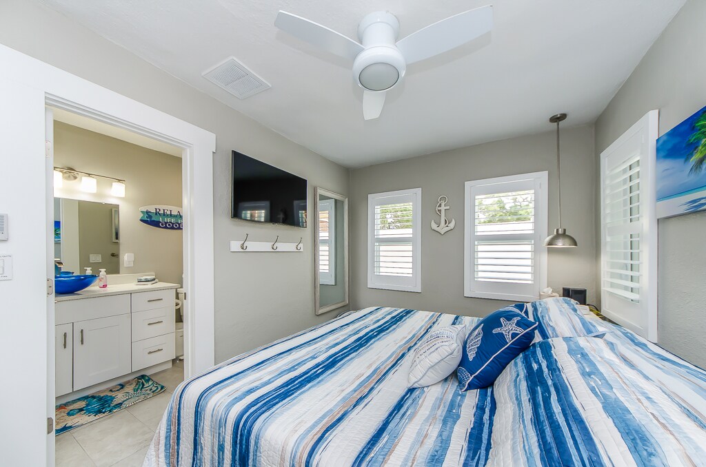 Sol – This fully renovated 1946 Indian Rocks Beach cottage blends historic charm with modern comfort. Just 177 steps to the white sand beach, and minutes to Clearwater and St. Pete Beach. Walk to coffee shops, shopping, and great restaurants. Each bedroom includes a white noise machine for restful sleep. Enjoy fast Wi-Fi, smart TVs, and a cozy outdoor space—perfect for relaxing after a day in the sun.