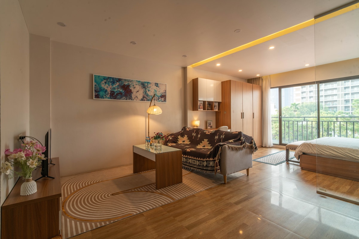 ¿Te gustaría disfrutar de una puesta de sol en Westlake desde tu patio en la azotea? ¿O despertarte con vistas panorámicas a un lago en un acogedor loft de estilo industrial-indochino? Ubicado en el sexto piso, este espacioso lugar de 1 dormitorio combina el encanto de Hanói con la relajación moderna. Estás en la zona de Westlake, donde los lugareños se encuentran con los expatriados, las cafeterías están por todas partes y el centro de la ciudad está a solo 10 minutos. Si eso suena a tu estilo, bienvenido a nuestro exclusivo apartamento con vistas en The Good Vibes, ¡la joya del edificio!
