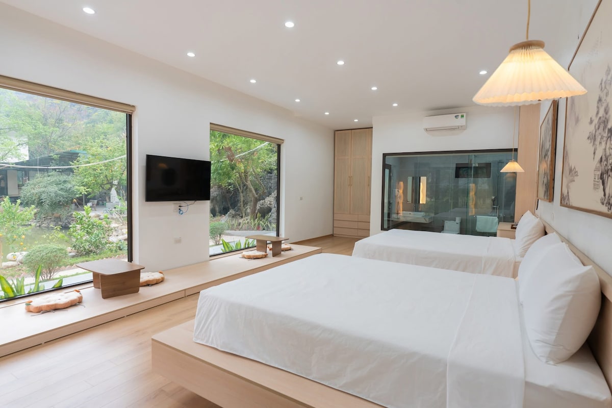 Disponemos de bungalows con vistas al lago y altas montañas, una característica única que todos quieren experimentar cuando piensan en Ninh Binh.