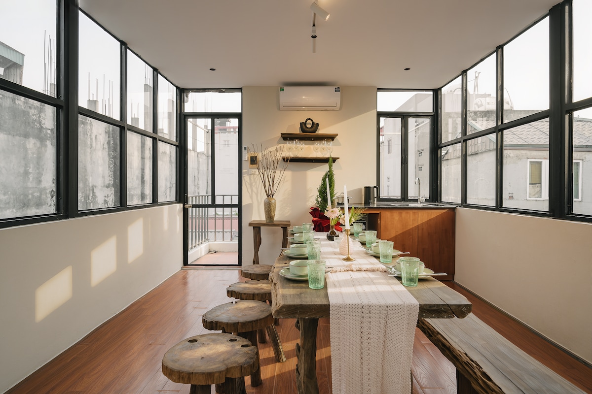 Highlights of the Apartment • Located in the heart of Hanoi’s Old Quarter, offering unmatched convenience. • Just a 1-minute walk to popular spots such as Hoan Kiem Lake and Old quarter • Surrounded by countless dining options, including some of Hanoi’s best and most authentic pho restaurants. • The house features a highly artistic design, filled with character and charm, creating a truly unique stay. • A spacious, well-equipped kitchen, perfect for cooking, and enjoying meals together.