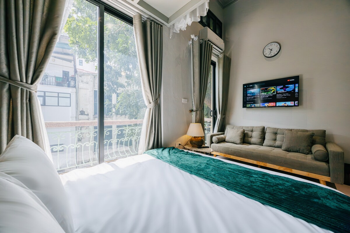 Apartamento No5: ¡nuevo apartamento con servicios ubicado en el corazón del casco antiguo con absolutamente todo lo que necesitas! Una cosa, ten en cuenta que tuvimos que cerrar el techo del edificio (antes era de cristal) debido a razones de seguridad, por lo que no hay mucha luz natural dentro de la habitación. - Ubicación céntrica, a pocos pasos del lago Hoan Kiem, la catedral de San José, la famosa calle del tren de Hanói, el Museo de Historia Militar y muchos más. - Ascensor en el edificio.