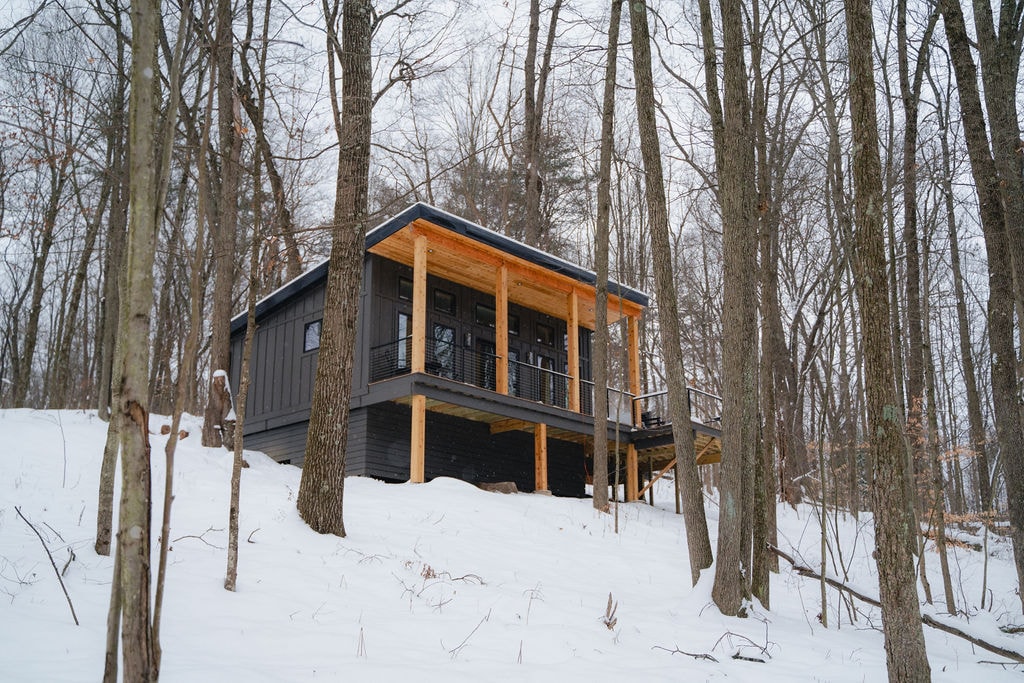 Inspirado en el diseño moderno de mediados de siglo, The Ledge cuenta con amplios ventanales de suelo a techo y zonas de estar al aire libre diseñadas para mostrar las cuevas circundantes y las cascadas estacionales. Ubicado a lo largo de un camino aislado y boscoso en 24 acres privados, cada detalle ha sido cuidadosamente seleccionado para su comodidad. The Ledge ofrece wifi, una bañera de hidromasaje, chimeneas interiores y exteriores, creando el equilibrio perfecto entre lujo y naturaleza. Aislado, pero convenientemente ubicado para todas tus aventuras en Hocking Hills.