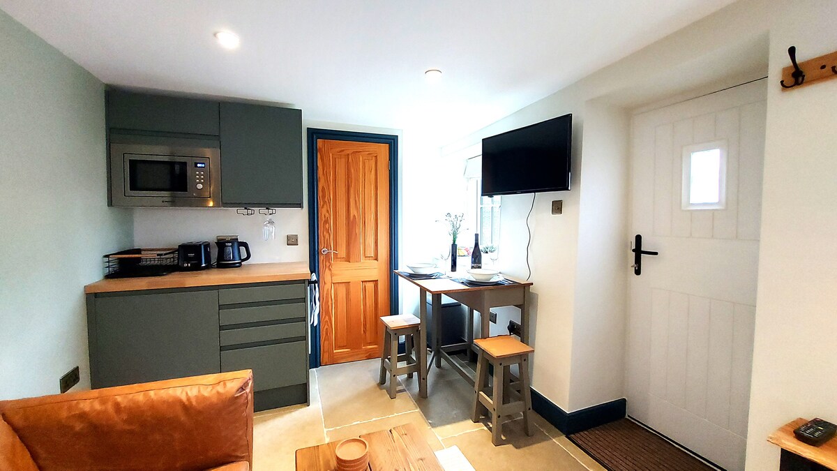 Esta casa de invitados del siglo XIX, reformada por expertos, está llena de carácter y lista para tu lujoso y relajante descanso. La sala de estar de planta abierta tiene una vista excepcional y, cuando quieras un cambio, hay una gran televisión inteligente y banda ancha de buena calidad para el entretenimiento. La cocina cuenta con placa de inducción y horno, lavavajillas y lavadora, así como todas las ollas, sartenes y utensilios que necesitas para cocinar deliciosas comidas. El baño con ducha/inodoro está convenientemente escondido en una esquina. Sube por la distintiva escalera de roble para encontrar el dormitorio de arriba, con su impresionante ventana redonda. Tiene capacidad para tres personas en una cama doble tamaño king y una individual separada, y también hay espacio para una cuna de viaje para un bebé. La casa es ideal para una pareja en una escapada romántica o para una familia con niños pequeños que buscan un espacio seguro para relajarse y jugar. CARACTERÍSTICAS PRINCIPALES - Un dormitorio arriba, con cama tamaño king doble y cama individual, espacio para cuna de viaje. - Un baño con ducha/WC: abajo. - Capacidad para tres personas y un bebé. - Zona de terraza exterior privada con vistas, uso compartido de 1,5 acres de prado y jardines seguros. - Se admiten perros, dos como máximo, pequeño cargo adicional. - Se admiten niños pequeños (pero es posible que tengas que traer una puerta de seguridad para las escaleras). - Smart TV (Netflix, iPlayer, Freesat, etc.). - Banda ancha de buena calidad/wifi (gratis). - Placa de inducción, horno, microondas, nevera (congelador disponible si es necesario), lavavajillas. - Mesa de comedor para cuatro, dos sofás de cuero. - Lavadora (y uso de secadora si es necesario). - Calefacción por suelo radiante (alimentada por bombas de calor de fuente de aire ecológicas). - Estufa de leña, primera cesta de leña gratis. La casa de invitados se puede reservar por semana (día de inicio el viernes) y para escapadas cortas de fin de semana y a mitad de semana.