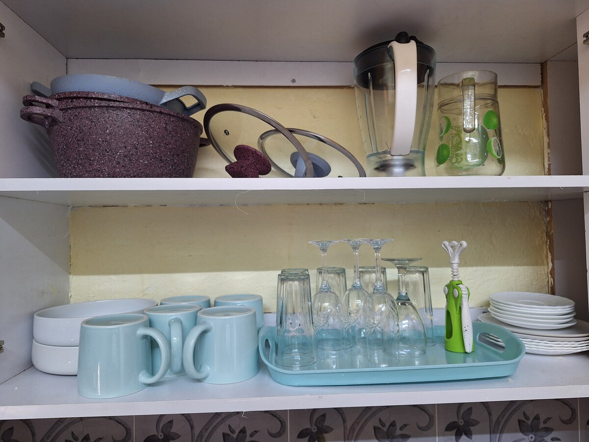 Relájate en este moderno estudio, ideal para viajeros solitarios o parejas. Disfruta de una cómoda cama, un baño limpio y una pequeña cocina. Lo más destacado es la hermosa vista del balcón, perfecta para el café de la mañana o el atardecer. Ubicado en un barrio seguro y cómodo cerca de la tienda con wifi y servicios esenciales para una estancia cómoda.