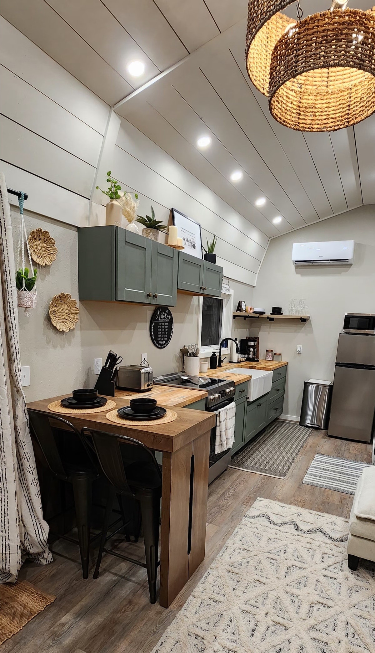 Este loft está situado encima de una pequeña y bulliciosa cafetería de la ciudad, también con vistas al parque en la plaza de la ciudad. El espacio es la combinación perfecta de encanto histórico antiguo con un toque urbano moderno con mucha luz solar natural que fluye a través de las ventanas delanteras. La cocina fluye a la perfección en la sala de estar, donde hay múltiples opciones para sentarse. El dormitorio y la sala de estar tienen televisores inteligentes si quieres usar tu propio sitio de streaming. El baño inspirado en el spa cuenta con numerosos servicios incluidos.
