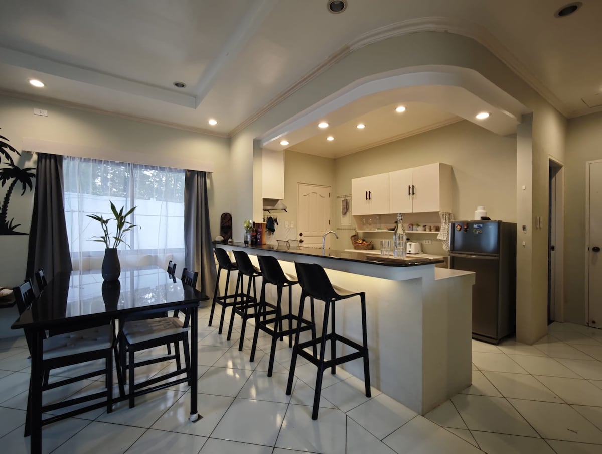 Disfrute del equilibrio perfecto entre la vida tranquila en la isla y la comodidad de la ciudad en nuestra acogedora casa en el corazón de Puerto Princesa. ¡Ideal para parejas o familias con 1 o 2 niños! Disfrute de un trayecto de 9 minutos en auto desde el aeropuerto y de 3 a 5 minutos hasta los centros comerciales y bares del centro de la ciudad. Lo mejor de todo es que está a 2 minutos a pie del Princesa Garden Resort. Consiga un pase de un día para su enorme piscina y parque acuático. Pasee hasta Balinsasayaw Seaside para disfrutar de mariscos frescos (plato típico filipino) y comprar recuerdos. - Le esperan un buen Wi-Fi rápido, 2 televisores grandes, jardín y playa⛱️.