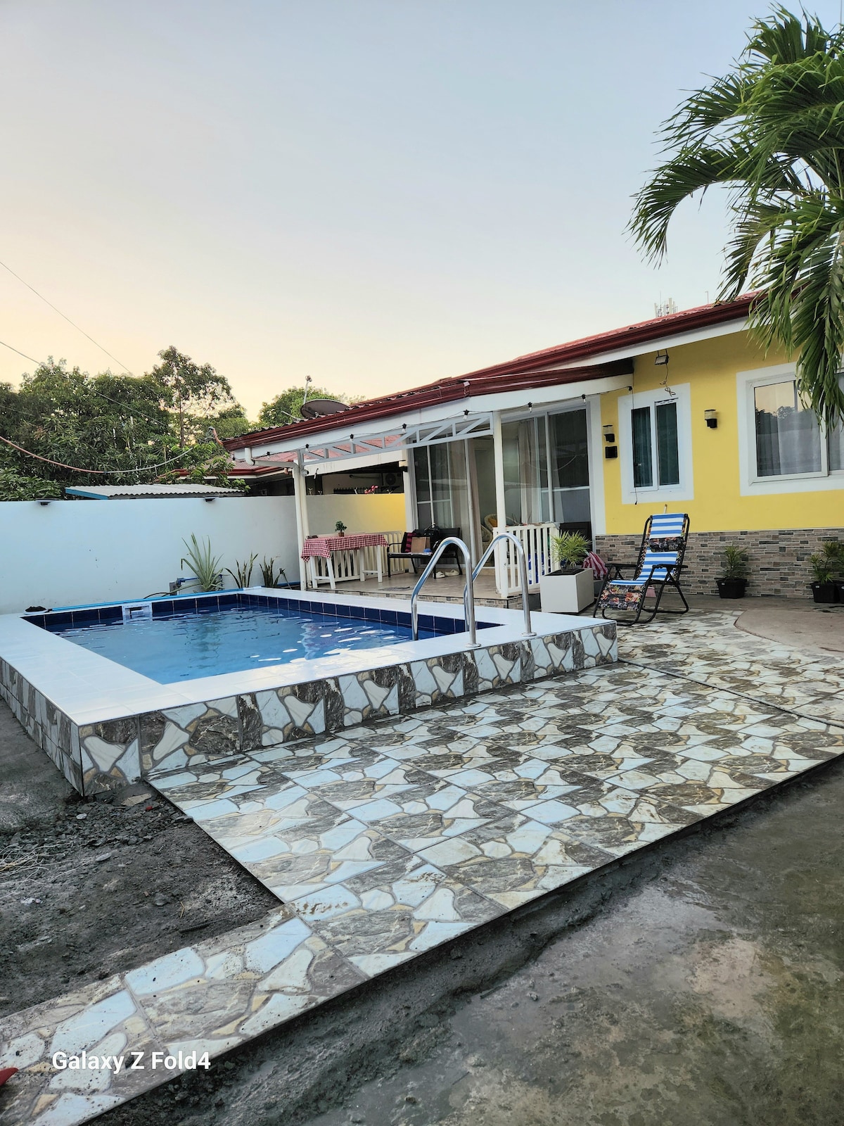 Inclusión: - Cama tamaño queen. - Sofá cama. - Colchón queen adicional - Internet rápido. -Secadora - Altavoz JBL, karaoke - Jacuzzi caliente y frío -Refrigerador - Dispensador de agua. - Habitación con aire acondicionado. - Televisión de 75pulgadas. - Netflix listo. - Ducha fría y caliente. - Cocina - Estufas eléctricas - Energía solar ✈️A 4 km del aeropuerto de Puerto Princesa 🏖️A 5 km de la playa BM 🚶🏻1 km del Parque Popular de Balayong 🏢A 2,6 km del centro comercial Robinson 🦋2,4 km Jardín de mariposas ⚪️2 km Tienda de recuerdos Pearl Añadir 500 pesos en efectivo por huésped con colchón/sofá cama adicional