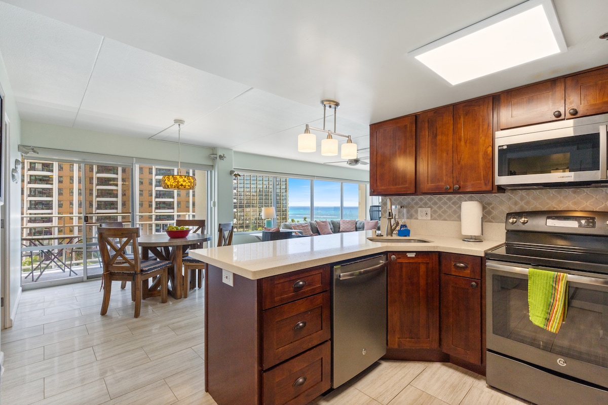 Moderno condominio / estudio renovado ubicado en el centro de Waikiki, en el 8vo piso del edificio Marine Surf Waikiki con ESTACIONAMIENTO GRATUITO en un puesto privado. El edificio está convenientemente al final de la calle de Luxury Row y del famoso Royal Hawaiian Shopping Center e International Marketplace. Ubicado en Seaside Avenue, una calle perpendicular al tramo de Kalākaua Avenue: playa de Waikiki, hoteles, tiendas, restaurantes y cafeterías.