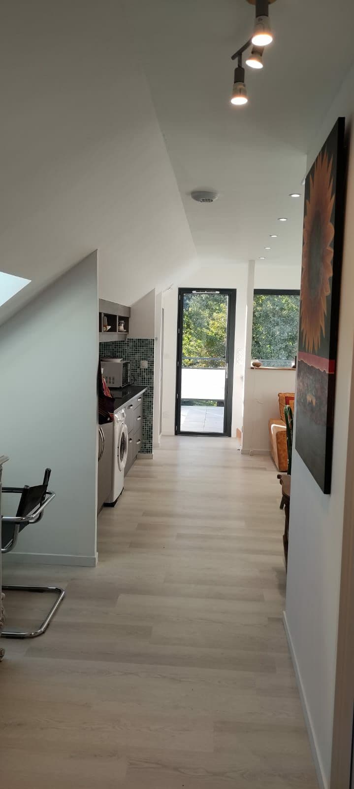 Encantador apartamento luminoso renovado en el primer piso de una casa en el fondo del patio PARA NO FUMADORES en el interior. Planta baja sala de estar de 26 m2 con cocina totalmente equipada y baño, arriba un dormitorio abuhardillado de 25 m2 con vistas a las montañas por el velux y 1 plaza de aparcamiento gratuita en nuestro patio sin vistas de la calle (3er lugar en el patio) Ayuntamiento de Tarbes a 2 km 500, Caminadour a 500 m, tienda a unos 1 km Vivimos al lado y a su disposición para satisfacer sus expectativas