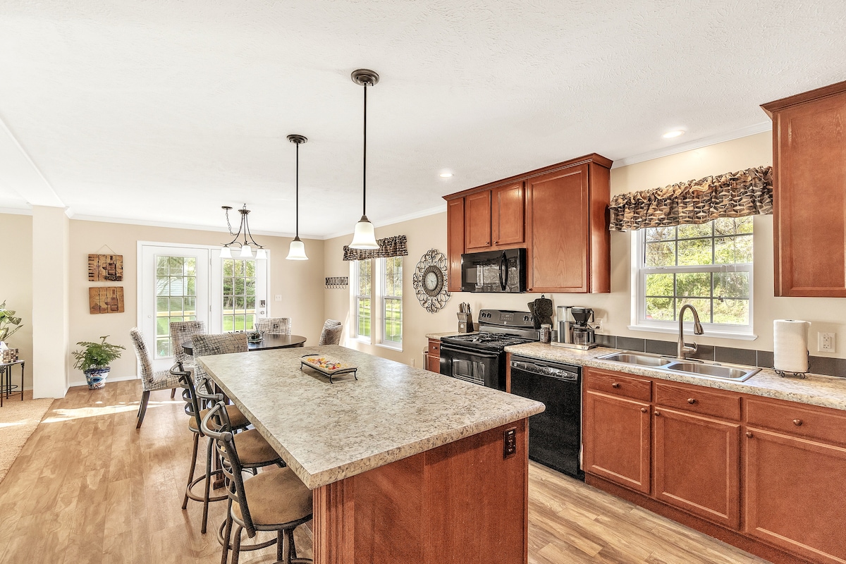 🎸Rock N Roll House: unique, artistic, and full of good vibes! Relax in the 6-person hot tub, grill on the decks, or hang in the 1-acre backyard. Explore themed rooms: Prince, Taylor Swift, Jerry Garcia & more! Brand-new kitchen & floors as of April 2025! See description, photos and renders for more info! Books, games, acoustic instruments, Roku, movies, Hi speed WiFi & more! • 4 bedrooms, sleeps 12! • Just 1/4 mile to Mt. Brighton! • Quiet country like but near I-96/I-23, dining & shopping!