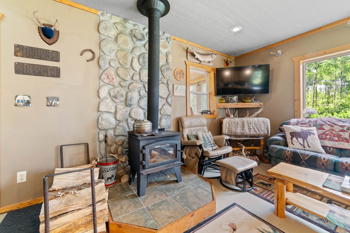 Este escondite sin conexión a la red, alimentado por energía solar, se encuentra en el río Knife, a pocos kilómetros de Two Harbors, Minnesota. La cabaña en sí está llena de comodidades. Una cocina completa, nevera de propano, luces que funcionan con energía solar y una chimenea/caldera de gas ofrecen las comodidades del hogar. Hay un baño exterior y leña para el fogón al aire libre. Tendrás que traer tu propia agua para beber, pero te proporcionamos agua para lavarte las manos y los platos en el fregadero. Tenemos café con utensilios, platos y especias.