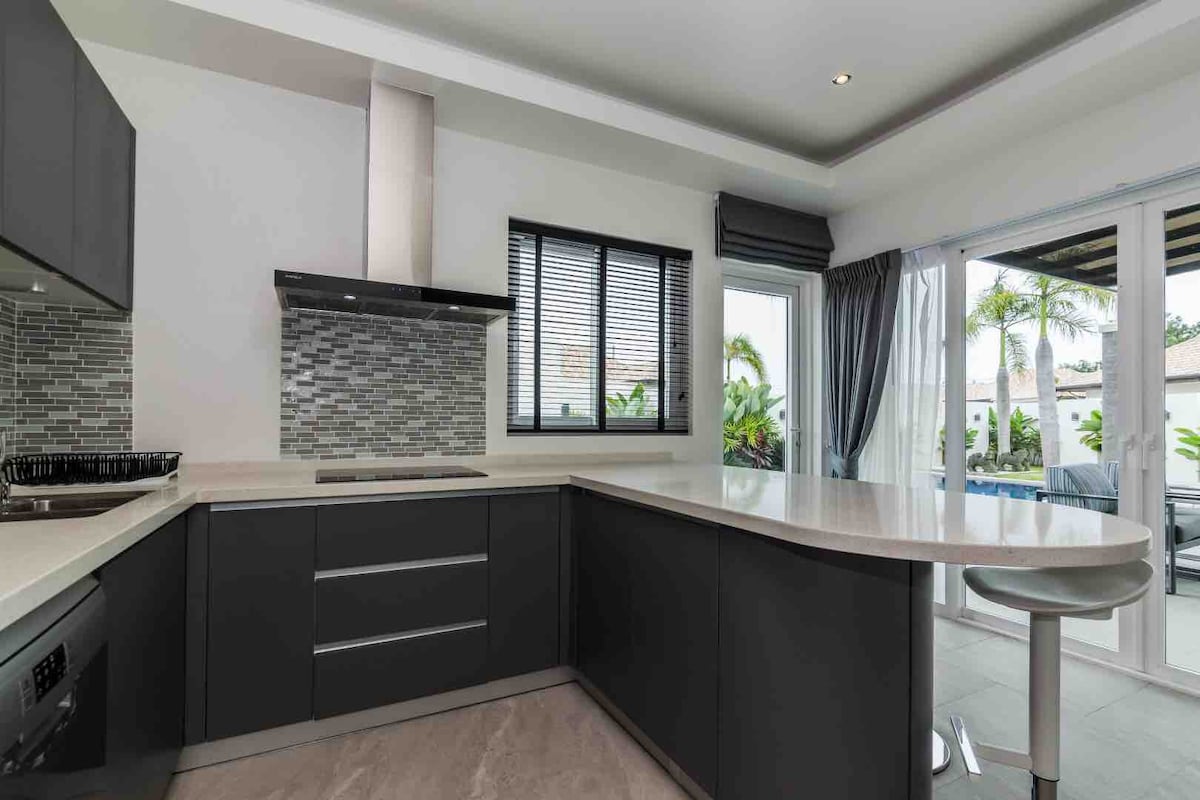 欢迎来到位于华欣市中心的私人泳池豪华别墅,别墅坐落在一个非常宁静,祥和的社区,距离24小时保安执勤门岗只有10米的距离。 别墅地理位置非常优越,拥有美丽的私人花园和超大泳池。两层别墅的设计为您提供宽敞舒适的居住空间,这栋别墅拥有3个卧室,4个卫生间,1个客厅,1个餐厅,1个厨房,2个露台,1个休息区,1个户外就餐区,1个烧烤区,1个泳池,1个浴缸,1个停车位。 当然,宁静并不意味缺乏服务和便利 距离大海直线距离1.5公里(驾车5-8分钟) 距离出租车停靠点50米 距离饭店100米 距离小超市200米 距离菜市场600米 距离7-11便利店750米 距离VanaNava Waterpark1.2公里 距离购物中心BLUPORT3.4公里 距离曼谷医院3.6公里 我们为您提供旅程所需的一切设施,包括并不限于厨房用品,床上用品,便利设施,一次性拖鞋,一次性马桶垫,电子驱蚊器,吹风机,各种酒具,急救药品,指甲刀,针线,简易修理工具,聚会游戏,书籍等。 希望您在这栋别墅中,度过一个美好的假期!