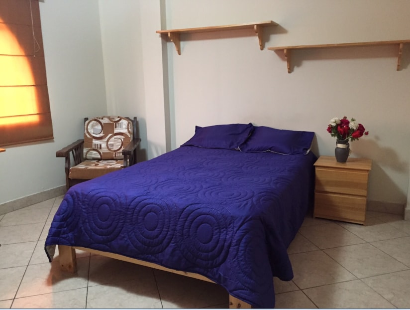 Departamento equipado y privado, únicamente para uso de nuestros clientes. Disfruta de la tranquilidad y seguridad de una zona tranquila, con vista al parque y luz natural. Cerca de av. principal, y de las estaciones de bus, a 5 min. del Centro comercial Real Plaza. Incluye espacio home office.
