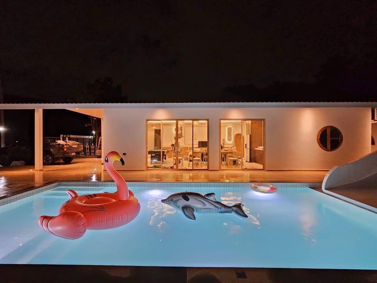 Junto al pequeño lago en Pattaya, puedes ver la increíble puesta de sol al aire libre.En la puerta se encuentra el famoso Templo Blanco y el Templo del Dragón Dorado, las habitaciones están totalmente equipadas, cada habitación es de gran tamaño, cubre un total de 1600 metros cuadrados, mansión unifamiliar, piscina privada, césped extragrande al aire libre, equipo completo de barbacoa.Relájate con tus familiares y amigos en este alojamiento tranquilo.Cerca hay campos de golf, carreras, espacio acuático, pueblo de elefantes y más.