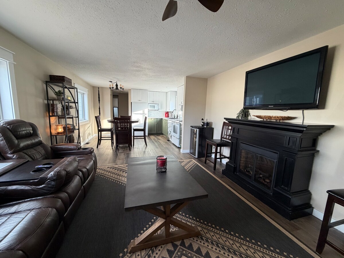 ¡Te damos la bienvenida a tu tranquilo retiro en el campo! Esta espaciosa casa está situada cerca de la autopista de Alaska, a solo 10 minutos en coche del animado centro de Fort St. John. Disfruta de lo mejor de ambos mundos: encanto rural y comodidad moderna, con una lujosa cama tamaño king y un baño privado principal. La acogedora sala de estar se completa con un cómodo sofá, TV inteligente de 75", aire acondicionado para mantenerte fresco y una chimenea para crear ambiente. Sal a la terraza envolvente y disfruta de los tranquilos alrededores.