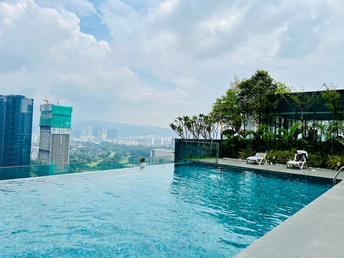 Siéntate y relájate en este espacio tranquilo y elegante. Why Orchid 2BR suite at Lucentia Residence: - Las mejores vistas de Kuala Lumpur - Decoración preciosa con un espíritu divertido - Ubicación céntrica y junto a un centro de transporte público - Wifi rápido. - 2 televisores con Netflix y otros - 2 piscinas hermosas. - Ideal para familias con cuna y trona. - Gimnasio, mesa de billar, barbacoa, piano - Estacionamiento en garaje. - Recomendado para 5 personas, máximo 6 - El centro comercial LaLaPort y la calle de entretenimiento WOW están adjuntos. - Tienda de comestibles, farmacia y cine, etc.