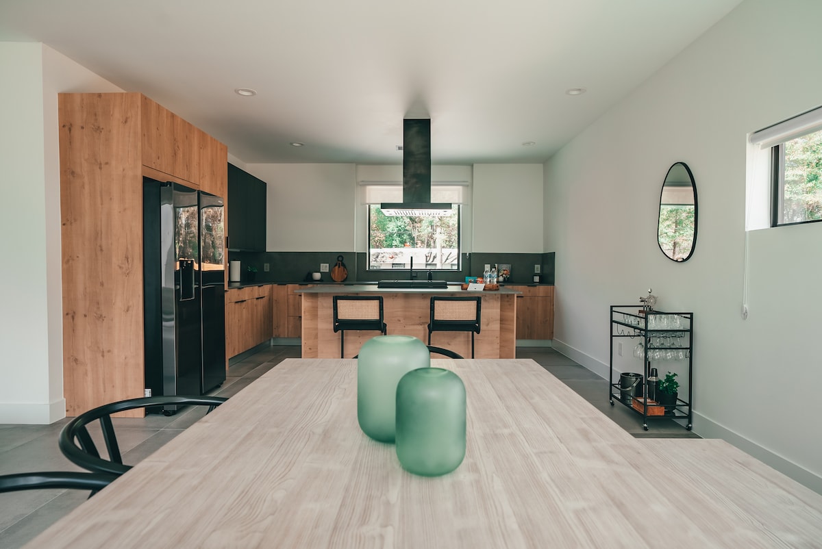 Este alojamiento único tiene personalidad propia. Moderna finca de lujo de concepto abierto. Alojamiento entero con puertas de cristal de arriba abajo. A pocos minutos de todas las hermosas atracciones de The Woodlands Texas. El lugar perfecto para venir y disfrutar de una estancia de lujo solo o con amigos, ¡hay muchos dormitorios con su propio baño! Trabaja desde casa en nuestro espacio de trabajo integrado con hermosas vistas al bosque. Crea tu propio estado de ánimo con toda la casa alimentada por luces Philips HUE.