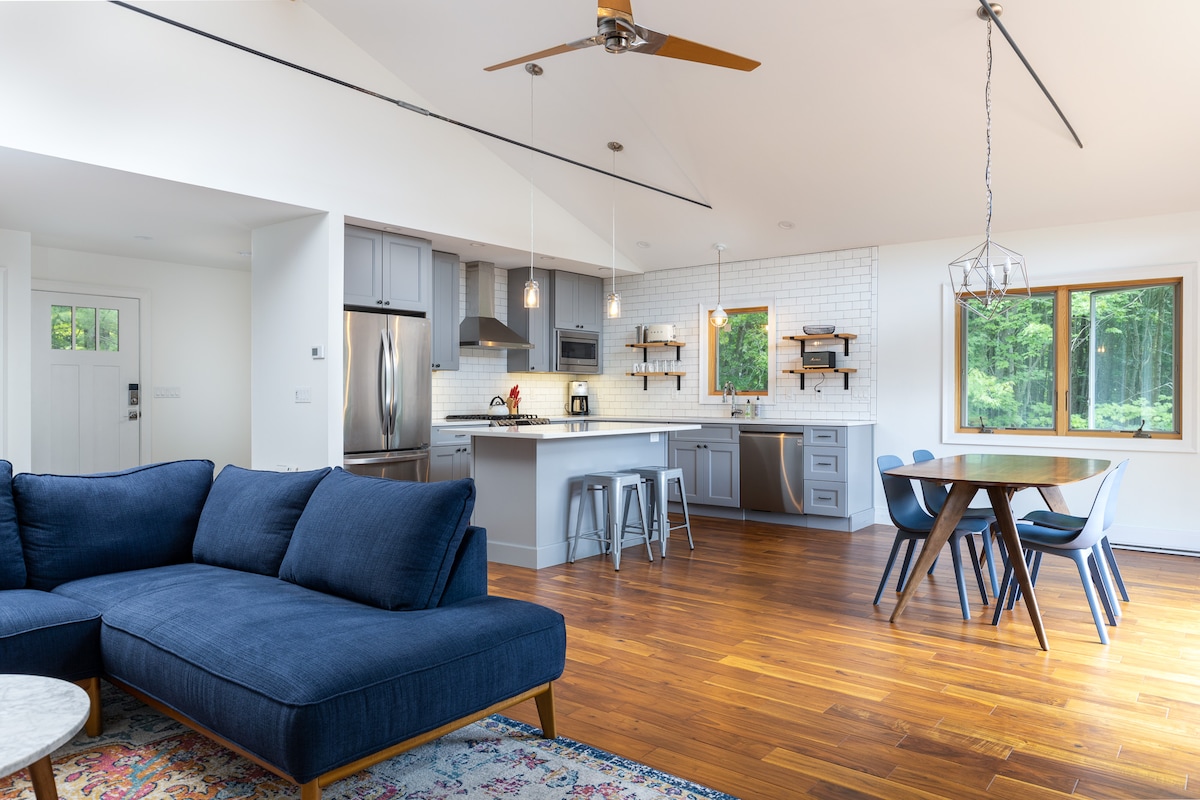 Nuestra casa es un espacio moderno y relajante para desconectar, explorar y tomarse el tiempo para respirar el aire fresco de la montaña. Hecho a medida para la relajación, el tiempo en familia y un sinfín de actividades al aire libre. Enciende un fuego crepitante en el interior o al aire libre en un hermoso pozo de fuego para esas noches de verano y otoño más frescas. Muy cerca de senderismo y para tomar el sol en el lago en verano y esquiar en invierno.
