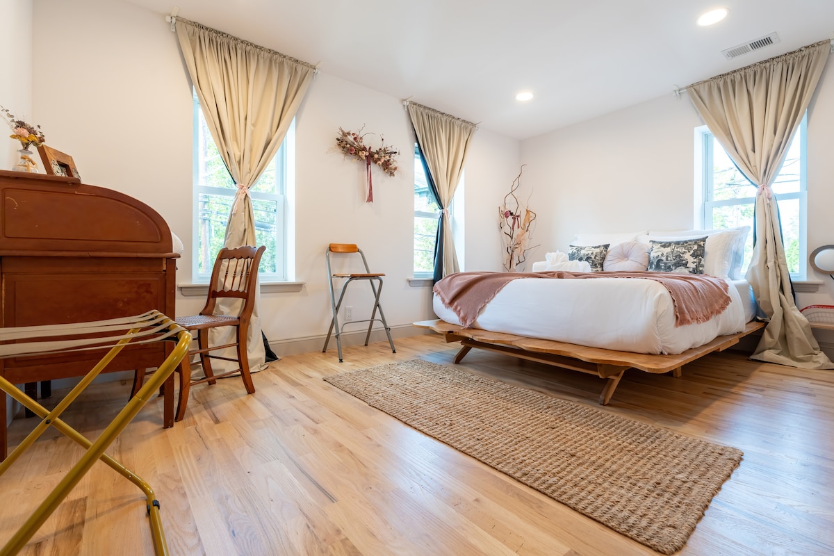 Situado en una histórica calle arbolada en la artística ciudad fluvial de Lambertville, el Union Street Retreat es el lugar perfecto para relajarse después de un ajetreado día de exploración. A poca distancia a pie de restaurantes y cafeterías, el camino de sirga, comestibles, a 10 minutos caminando de Bridge Street y el puente New Hope. Ten en cuenta que esta es la unidad del SEGUNDO piso de un dúplex en un conjunto histórico de casas adosadas construidas a finales del siglo XIX, con un tramo de escaleras algo estrecho hasta la unidad. Ideal para 4 adultos, pero puede alojar hasta 6.