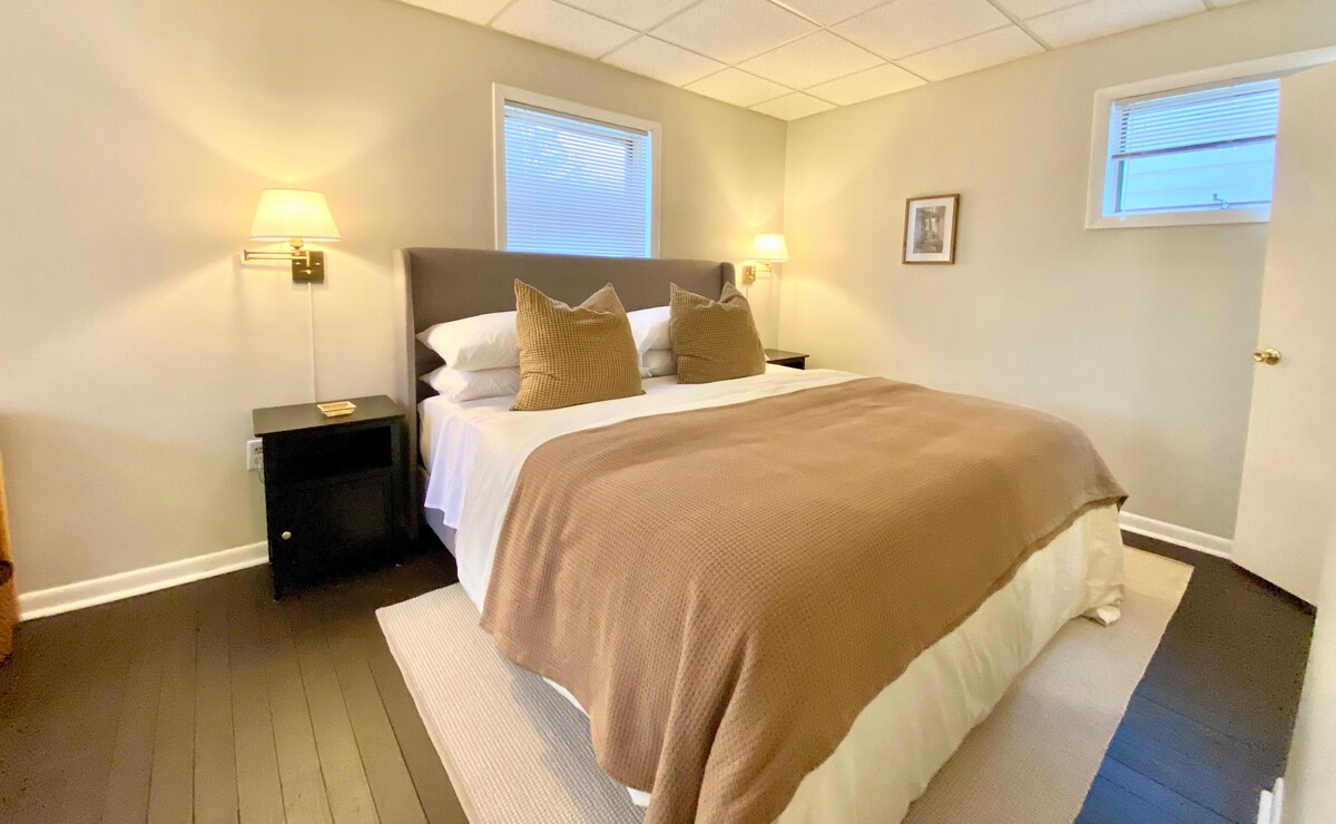 La suite Gernand es una lujosa suite extragrande del segundo piso con vistas al centro de Huntington. La habitación cuenta con una enorme cama California King de cuatro columnas, chimenea, suelos de madera y alfombras de felpa. Esta suite tiene un baño vintage privado, con bañera/ducha profunda. Las ventanas totalmente cerradas te proporcionarán una sensación de privacidad y aislamiento. Wifi gratuito, TV de alta definición, asientos cómodos y dos camas individuales para huéspedes adicionales. Se aplicarán impuestos estatales y locales del 12% en el momento de la confirmación.