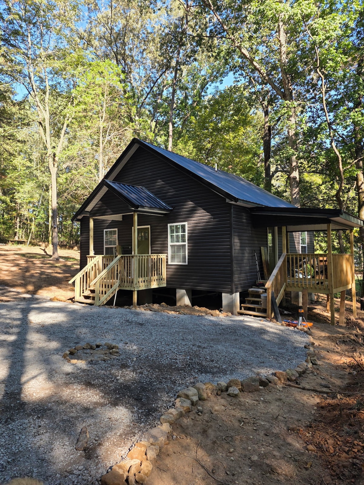 Relájate en este espacio tranquilo y elegante como campamento base de pescadores o refugio familiar. Una nueva cabaña ubicada en un prado boscoso a 600 yardas del hermoso lago Guntersville. A 2 minutos de una rampa pública para barcos y a 4 minutos del puerto deportivo Sunrise con una gran rampa, estacionamiento, combustible, servicios, etc. Una amplia sala de estar/comedor/cocina, un baño completo, 2 camas tamaño queen y una cama plegable individual más un sofá grande. Electrodomésticos de tamaño completo, aire acondicionado, gran terraza delantera, parrilla de gas y una gran entrada de 40pies.