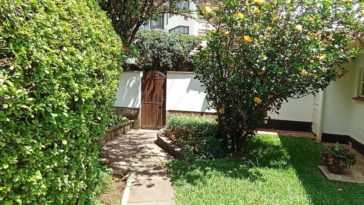 A beautiful fully furnished and serviced 1 bedroom cottage located in the quiet residential suburbs of Kileleshwa. It has it's own private yard to ensure privacy, and a living room, dining area, kitchen, bedroom and bathroom. There is TV (55 inch) with Netflix, Prime video & others, WiFi, a safe and solar power backup. A TV is also in the bedroom. Housekeeping provided. It is conveniently located for access to major spots in Nairobi. Ideal for both short and long term stay.