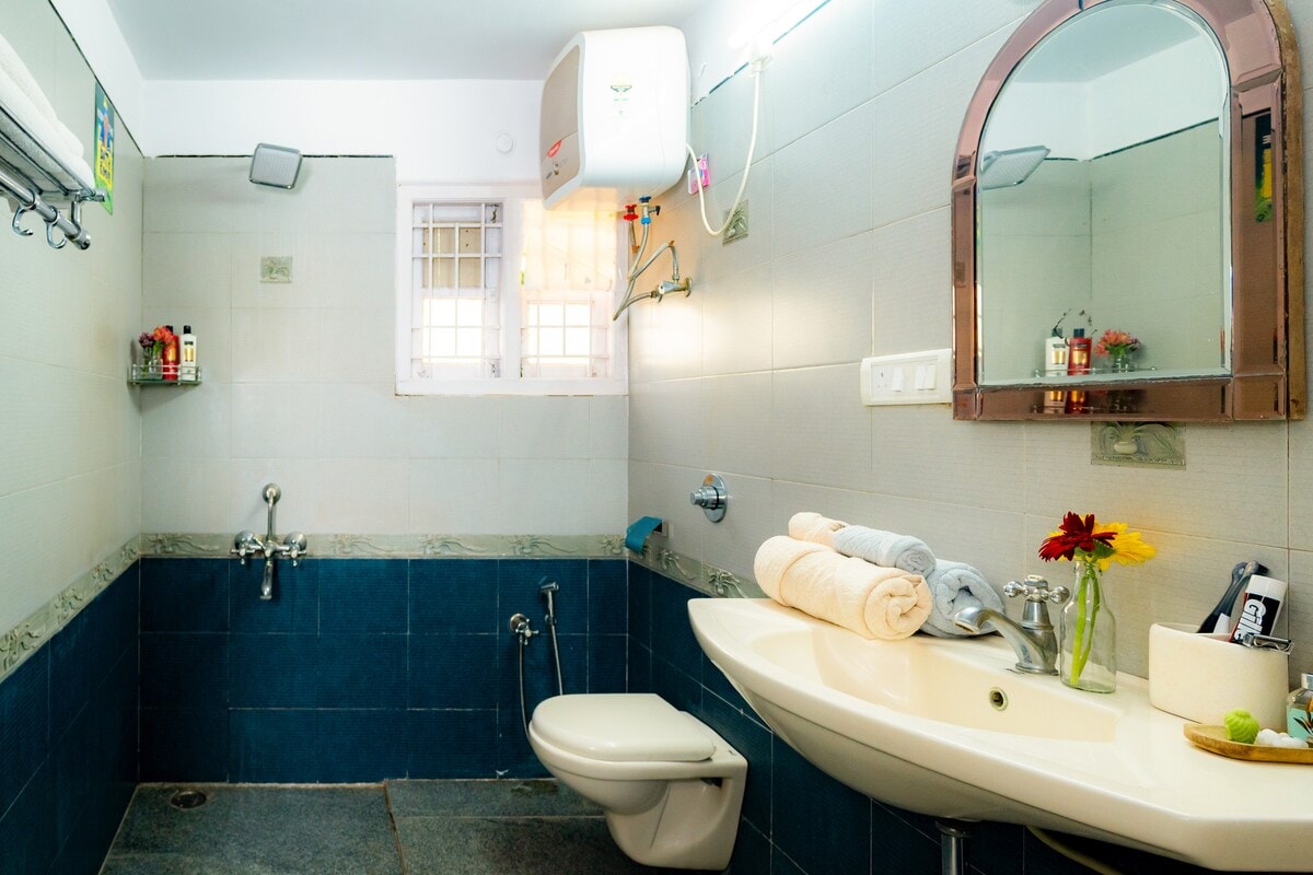 Relax in our calm and comfortable pet friendly villa, located in a quiet, serene neighborhood away from the city rush. Perfect for both, families and couples even for long stays. The space is bright, spacious, and thoughtfully designed for a restful experience. Enjoy fresh air, peaceful surroundings, and a home that lets you truly unwind. Note: Pool cleaning happens daily and post every checkout, the pool is drained, refilled and chlorinated.
