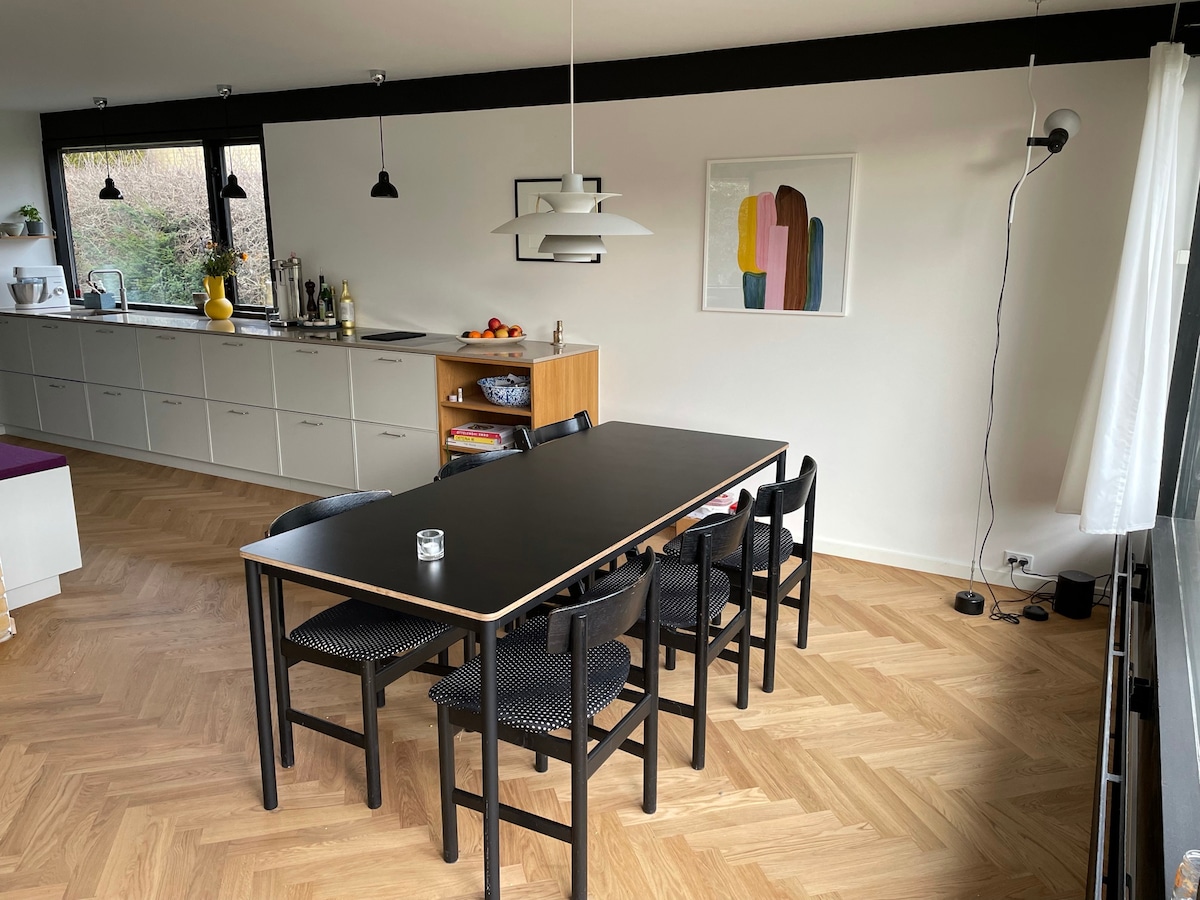 Acogedora y presentable asignación con un toque escandinavo. Hay 2 casas de cada 57 m2 (114 m2 en total), con una terraza en el medio. En una casa hay una cocina, una sala de estar, una sala de estar y un inodoro y en la otra casa hay un dormitorio, una habitación y un baño. Acogedor jardín privado orientado al sur con mesa, bancos y sillas de jardín. Hay estacionamiento gratuito frente a la casa. Se tarda menos de 15 minutos a pie hasta la estación de Hvidovre, también a 30 minutos del centro de Copenhague en tren . Siempre hay café orgánico en la casa.