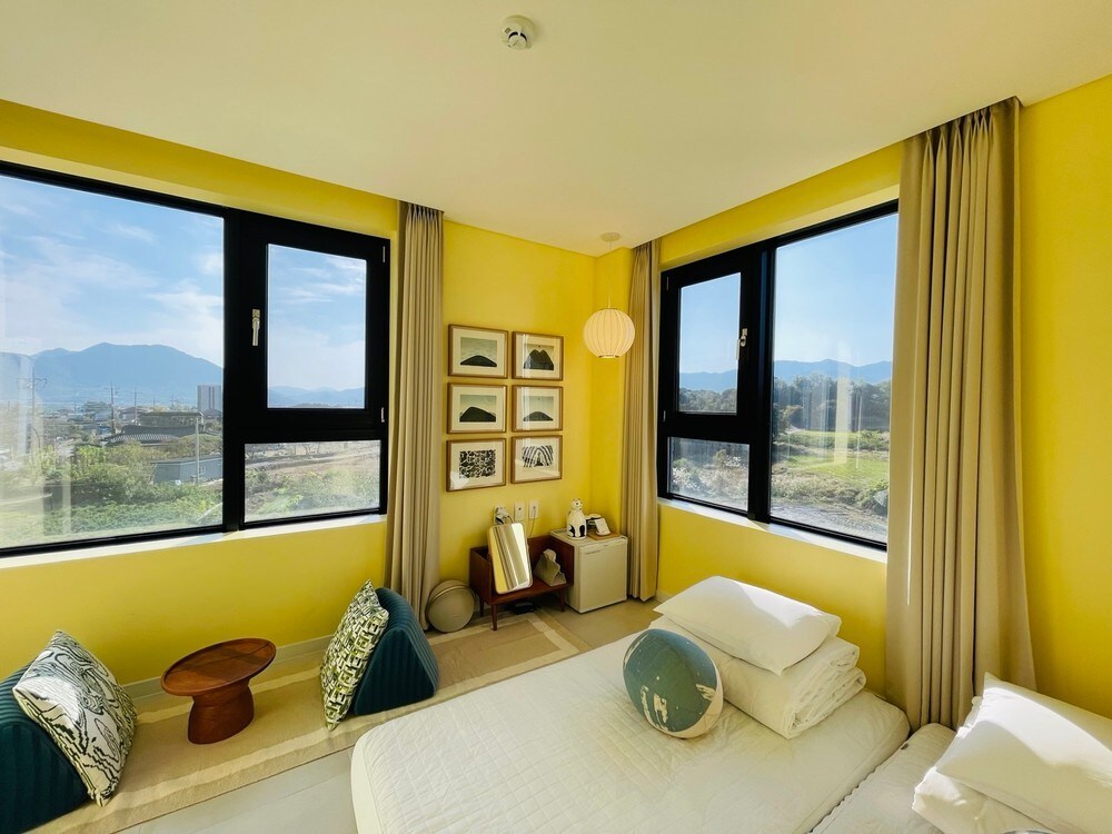 Es una pensión sensacional donde puedes disfrutar de un verdadero “descanso” lejos del ruido del centro de la ciudad combinando las instalaciones recién renovadas y el paisaje natural. En la habitación, puedes disfrutar de un espejo de pie, un espejo grande, un purificador de aire, una cabina de bañera grande, un altavoz Bluetooth, una cama tamaño king, un inodoro ordenado y limpio, una cabina de experiencia de ceremonia del té, una experiencia de baile del pueblo y una experiencia de juego tradicional. ¡Siente la sensibilidad de las cuatro estaciones en un hanok de alta clase!