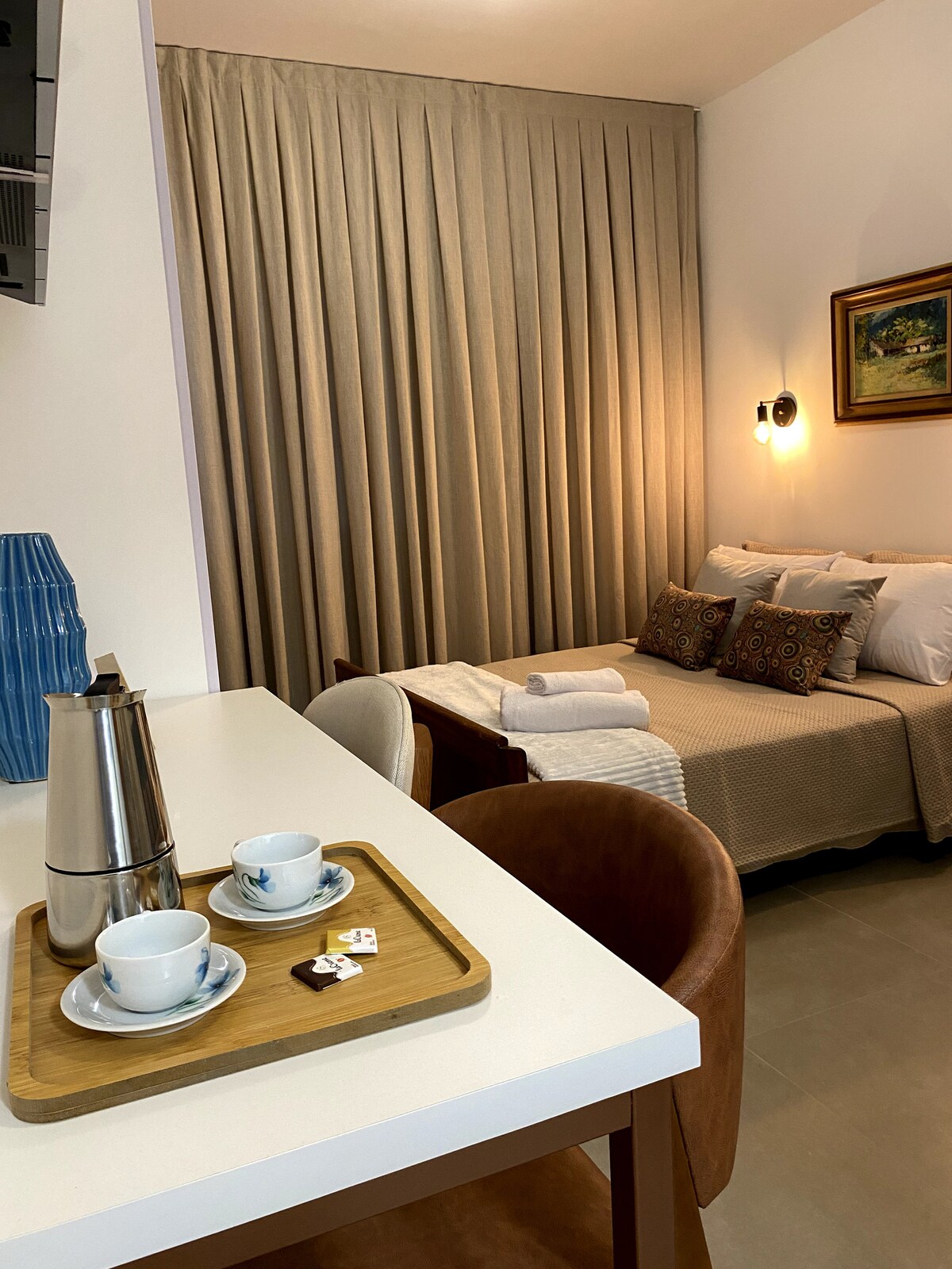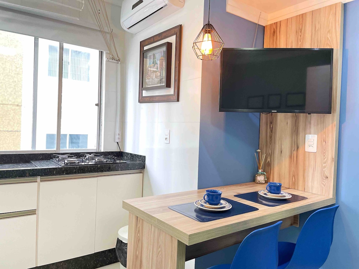 Hermoso loft NUEVO/KITINET, planeado para una pareja o personas que viajan solas por placer/trabajo Ambiente acogedor y tranquilo. Se encuentra justo en el centro, cerca de la playa, el mercado, la farmacia, los bancos, el centro comercial, etc., a pie se tarda 4 minutos en llegar a la playa. Entorno pequeño pero bien planificado y cómodo. Habitación y cocina + 1 baño - Aire acondicionado - Cocina completa. - Ofrecemos sábanas. • Bebedor con agua filtrada • TV inteligente de 32pulgadas • Wifi 250 mb • Sin garaje.