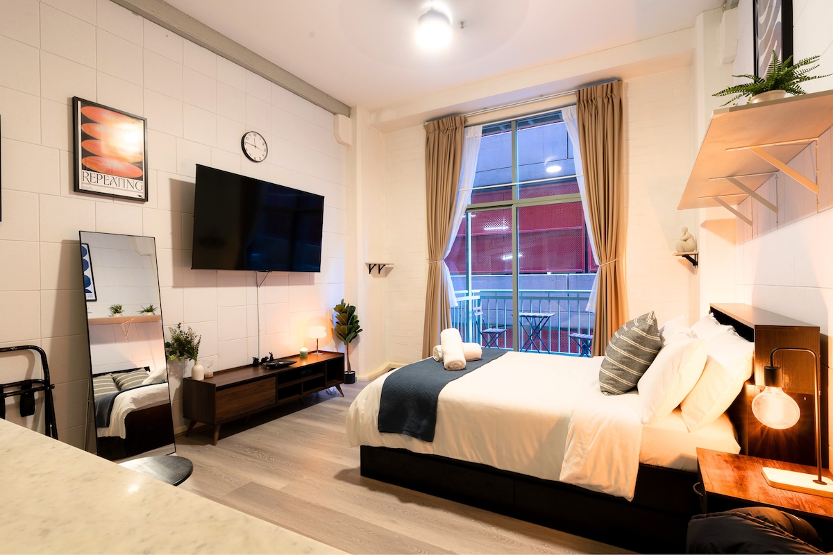 Apartamento tipo estudio moderno RECIÉN reformado, a pocos minutos a pie del icónico puerto Darling de Sídney. Fácil acceso a lugares de interés (barrio chino, ayuntamiento, Darling Square y mucho más). A minutos a pie del transporte (metro, tren ligero, autobuses). Complejo de apartamentos seguro. A prueba de sonido, perfecto para huéspedes sensibles al ruido. Minicocina con cocina eléctrica. Baño propio (incluye toallas de baño y artículos de aseo). Balcón privado propio. Wifi de alta velocidad gratuito. Aire acondicionado. Ubicación: Dixon Street, Sídney NSW 2000.