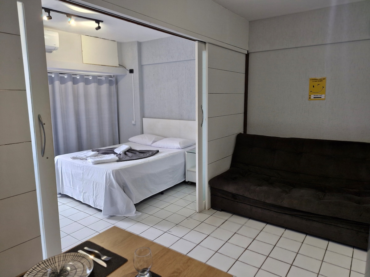 El Flat está en una excelente ubicación, en uno de los barrios más nobles de Recife, Pina, a pocos metros del Shopping Rio Mar, caja fuerte, dormitorio y sala de estar, con cama doble y sofá cama en la sala de estar, cocina con horno, microondas, 2 aires acondicionados (Split), 2 televisores, wifi 100Megas, armario, espejo, mesa de comedor y de trabajo, utensilios y electrodomésticos de cocina, ollas, etc., secador de pelo, ropa de cama y toallas. Amueblado, plaza de aparcamiento, gimnasio, restaurante, piscina y azotea. Hermosa vista de Recife.