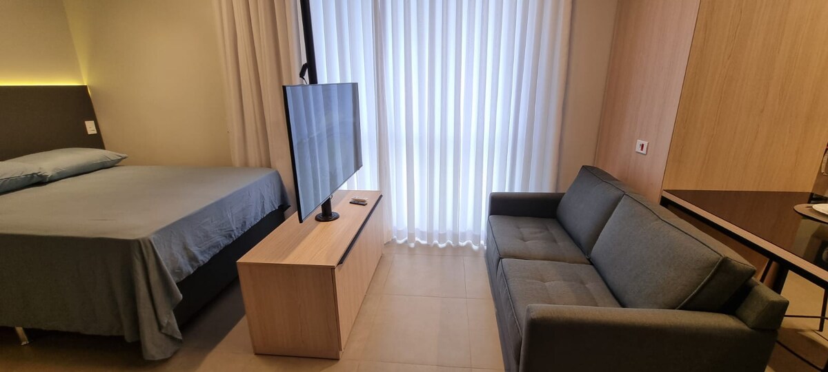 Estudio ubicado en la zona central de Maringá, a pocos metros de la Catedral y también cerca de grandes hipermercados, y el gran centro gastronómico de Maringá, el mercado municipal, Estadio Willie Davids. Apartamento tipo estudio, ambiente integrado, cómodo, con aire acondicionado, netflix, wifi y cocina completa, lavadora. Garaje en el sótano. Acceso de invitados: Piscina climatizada Sauna Coworking Espacio para reuniones Lavandería colectiva Coliving Pet Friendly Espacio Fitness.