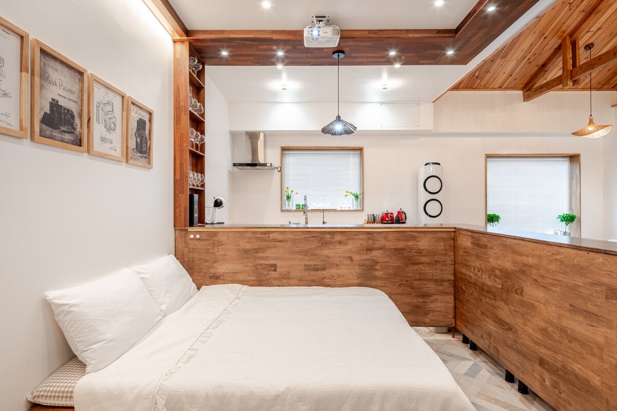 Contemporary Hanok Stay #101 Private House "Dreamstone sweet room" Jeju Miheon, which means beautiful house in Jeju, is a minimalist hanok. This fusion hanok contains the sensibility of a traditional hanok, but improves the insulation and convenience, which are the shortcomings of hanok. It has the advantage of being located a 6-minute drive from Jeju Airport and a 5-minute walk from Yongduam Beach. Suite room #101 is a private house and is based on 2 people. Up to 3 people can stay there.