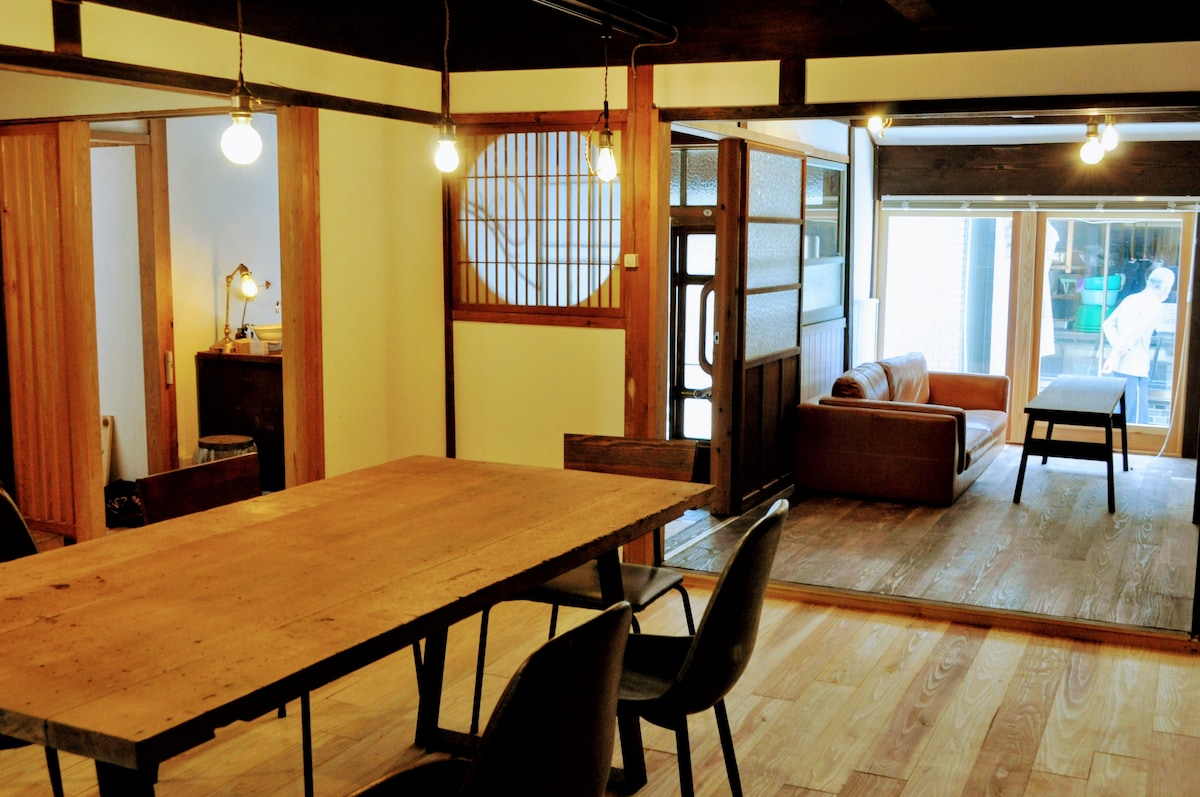 Renovación de una antigua casa privada construida hace más de 100 años.No reserves si buscas comodidad o perfección, como una casa u hotel moderno.Tratamos de limpiar cada detalle para que podamos proporcionar sábanas y toallas limpias, pero no podemos evitar que insectos como arañas pequeñas entren desde los huecos únicos a la casa antigua.También huele a peces y rocas exclusivas de la ciudad del puerto pesquero.No es apropiado para personas nerviosas.También puedes disfrutar del hermoso paisaje, como el ambiente del puerto pesquero nostálgico y la puesta de sol sobre el puente Yobuko si caminas un poco.Daiba-Yu también tiene vistas al mar.El primer piso tiene un comedor y una sala de estar, una cocina, un inodoro y un baño.3 dormitorios individuales en el segundo piso con dos camas individuales.Hay 6 camas individuales en total y hay 10 habitaciones de estilo japonés tatami, por lo que también se pueden preparar futones. https://www.yobukosoyogi.com/