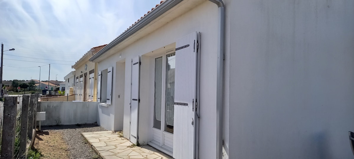 Une maison de 35 m2 située impasse de la Bourrine, au calme, proche tous commerces, à 10 minutes à pied de la belle plage de Notre Dame de Monts et aux portes du beau marais vendéen. De plain pied, avec espace jardin convivial de 30 m2 et barbecue. Une belle chambre et un séjour cuisine bien équipée Salle d'eau refaite à neuf. Idéal pour des vacances à la mer et les promenades dans le marais, emmenez vos vélos et posez les dans la maison. Parking facile alentours. Option ménage 60€ si animaux