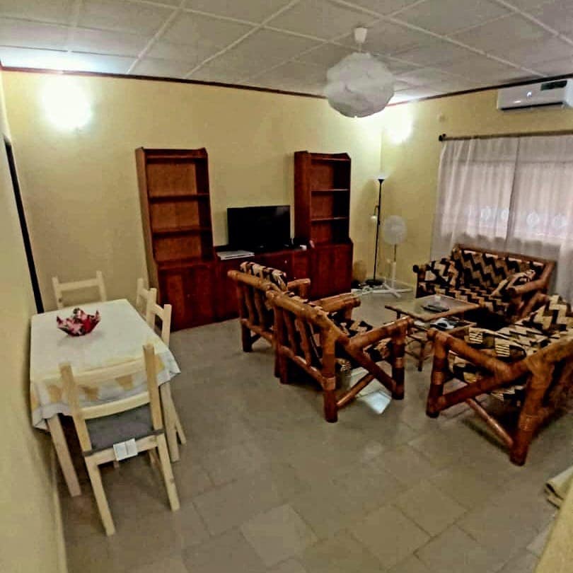 Casa totalmente equipada en kipé con estacionamiento: 3 dormitorios, 2 baños con ducha, sala de estar y cocina. Muy bien situado ( a 100 metros del borde de la carretera T2, a 400 m del restaurante seven eleven, no muy lejos del hotel Sheraton y del centro comercial Prima Center). Todas las comodidades: agua corriente, calentador de agua, aire acondicionado, televisión, etc. La residencia cuenta con un vigilante de día y de noche. Hay a su disposición una caja de Internet bajo demanda (el inquilino debe recargarla).