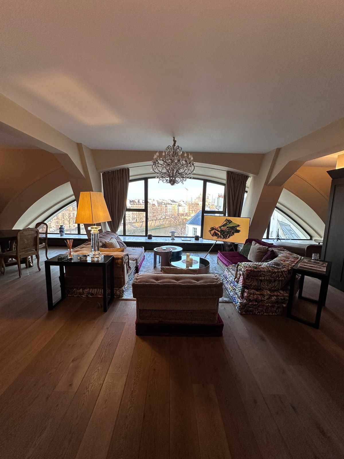 Descubra el encanto de París desde la comodidad de su propio refugio. Ubicado en el corazón del Marais, el apartamento ofrece impresionantes vistas panorámicas del Sena, la Torre Eiffel y Notre-Dame, una escena sacada directamente de una postal. Envueltos en la acogedora elegancia del apartamento, es el punto de vista definitivo para observar París en todo su esplendor. Estás en primera fila de la magia de París.