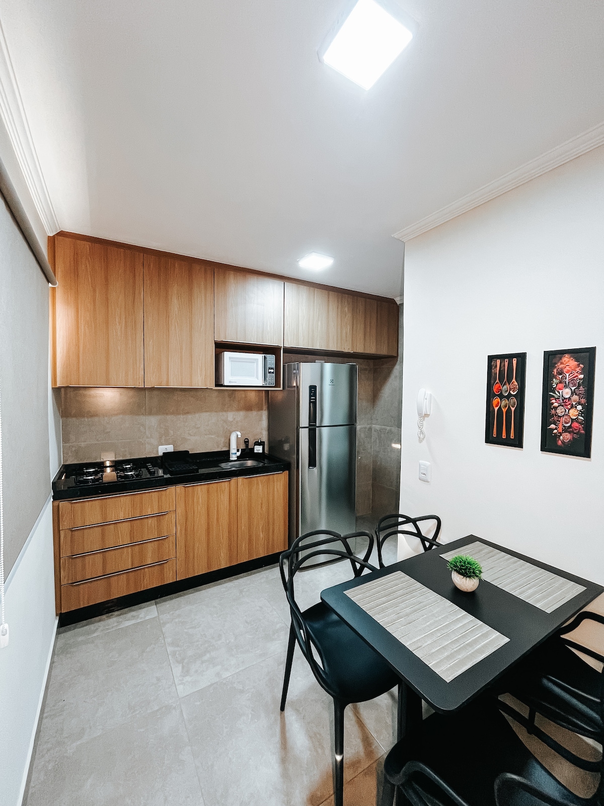 Kitnet sencillo pero acogedor. Tiene capacidad para 4 personas. Está cerca del centro comercial, supermercados, a 3 minutos de Acqualinda. Tiene garaje. Tiene wifi gratuito. Cuenta con cocina con minibar y microondas. Aire acondicionado y TV. Algunos utensilios de cocina, como platos, cubiertos, vasos. Es un ambiente tranquilo y seguro. Tiene puerta automática y cámaras de seguridad en el lugar.