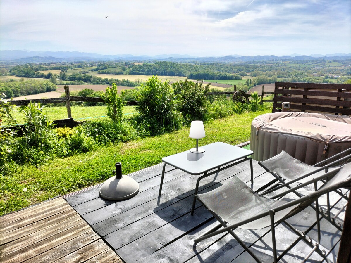 Caravana empotrada al estilo chalet con sus terrazas (interior y exterior) con vistas panorámicas de la cordillera de los Pirineos. Idealmente situado en el centro del departamento, este alojamiento está totalmente equipado: cama (140x200) ropa de cama incluida, sanitarios (lavabo, ducha, inodoro seco que gestionamos el mantenimiento), zona de cocina (placa eléctrica, refrigerador, microondas, vajilla, cafetera senseo y hervidor de agua) y su terraza orientada al sur con jacuzzi.